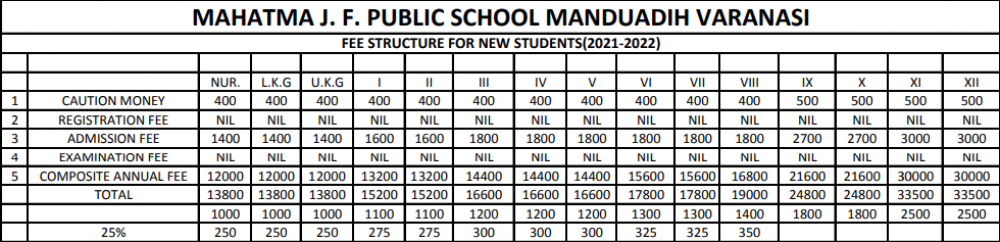 Get fee details about admission, Tuition fee and transort fee and other fee details.