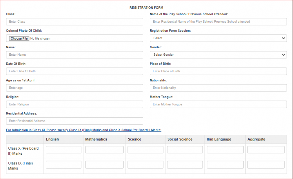 - The parents or guardians of the children can obtain the registration form from the school website or by visiting the school office. Remember registration does not guarantee Admission. All the students have to deposit the registration fee of Rs.600.