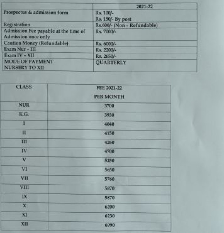 | Exam fee (IV- XII) | ₹ 2,650 |