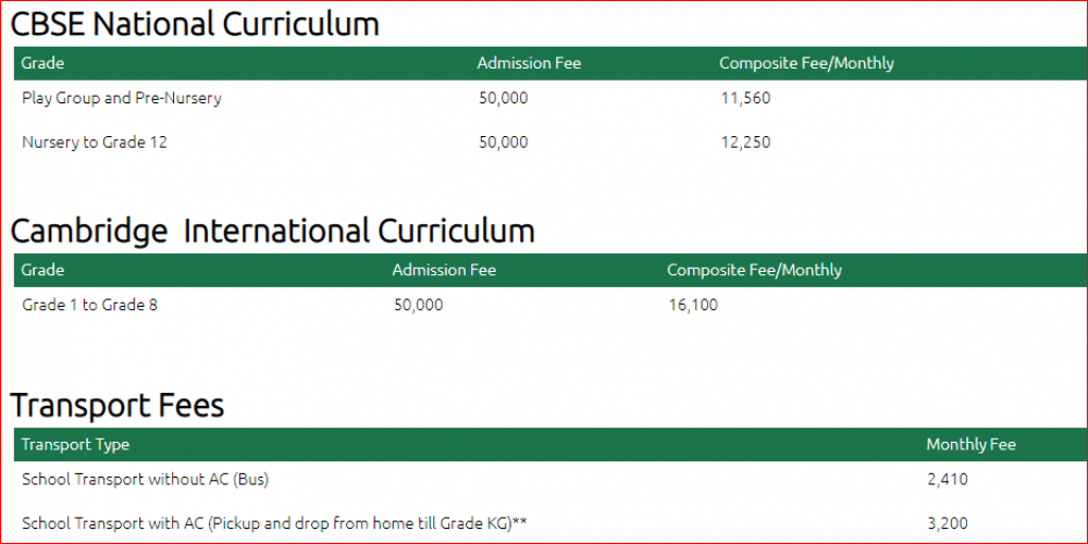 Note: Please contact school or visit official site for updated fee structure for year 2023- 2024.