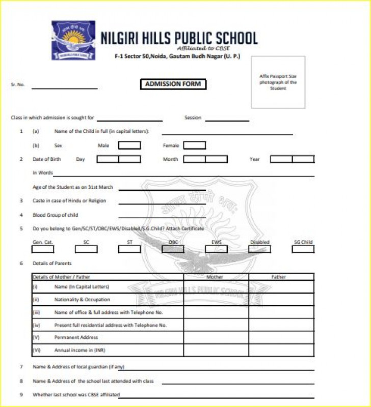 {Nilgiri Hills Public School, Noida Admission form -(Based on Previous Year)}