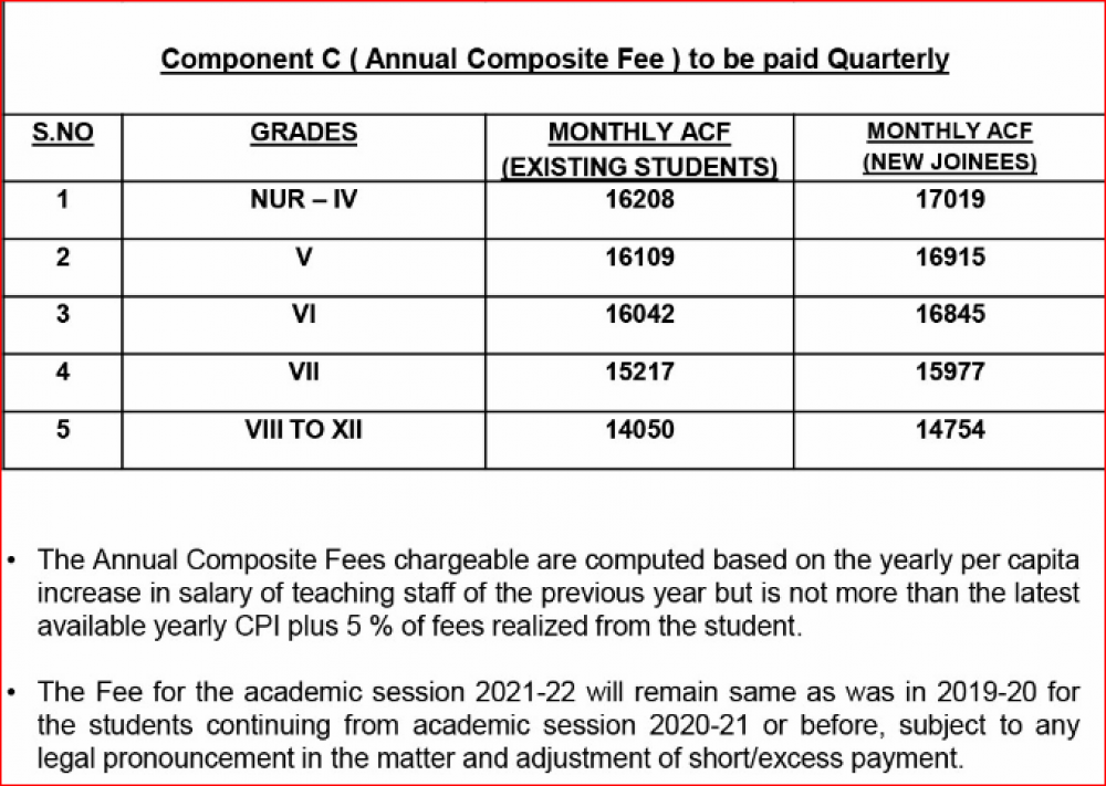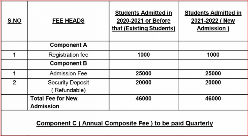 Note: Please contact school or visit official site for updated fee structure for year 2023- 2024.