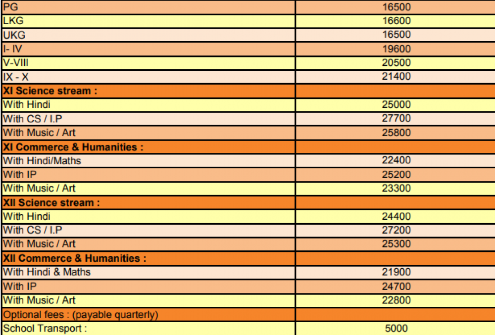 Note: Please contact school or visit official site for updated fee structure for year 2023- 2024.