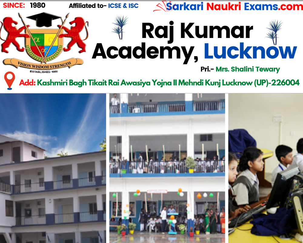 Raj Kumar Academy, Lucknow (राज कुमार अकादमी, लखनऊ), was established in 1980 RKA, Lucknow Admission (Based on Previous Year), is up to class RKA, Lucknow Admission (Based on Previous Year). RKA, Lucknow Course & Fee Structure is an ICSE & ISC Board school in Mehndi Kunj, Lucknow District. Affiliation no of this school is UP095. Currently, Mrs. Shalini Tewary is the Head/Principal of RKA, Lucknow Course & Fee Structure. This school has courses Paly Group, Nur & KG, Class I, Class II, Class III, Class IV, Class V, Class VI, Class VII, Class VIII, Class IX, Class X, Class XI, Class XII, . Check details of Raj Kumar Academy, Lucknow (राज कुमार अकादमी, लखनऊ) Admission Form , Contact Number (E-Mail/Phone Number), Fee Structure, and Latest Official Notice.