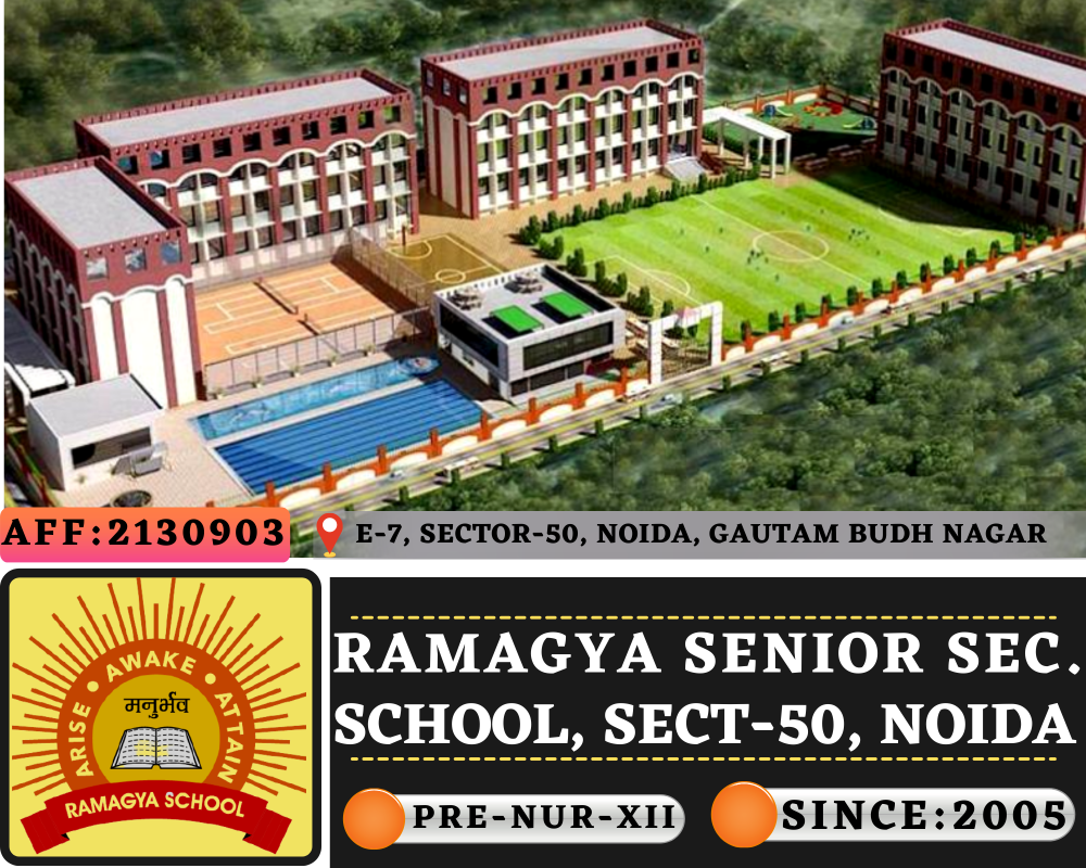 Ramagya School, Noida (UP), रामज्ञ स्कूल, नोएडा (यूपी), was established in 2005 RS, Gautam Budh Nagar (Noida), is up to class RS, Gautam Budh Nagar (Noida). Ramagya School Complete Information Such as-Admission Procedure, Fee Structure, School Syllabus, Location & Address is a CBSE (Senior Secondary) Board school in E-7, Sector-50, Noida, Gautam Budh Nagar (Noida) District. Affiliation no of this school is 2130903. Currently, Ms. Aparna Magee, [सुश्री अपर्णा मगी] is the Head/Principal of Ramagya School Complete Information Such as-Admission Procedure, Fee Structure, School Syllabus, Location & Address. This school has courses Pre-Nur to KG, Class I to III, Class IV & V, Class VI to VIII, Class IX & X, Class XI & XII (Sci, Comm, & Human. Stream), . Check details of Ramagya School, Noida (UP), रामज्ञ स्कूल, नोएडा (यूपी) Admission Form -(Based on Previous Year), Contact Number (E-Mail/Phone Number), Fee Structure, and Latest Official Notice.