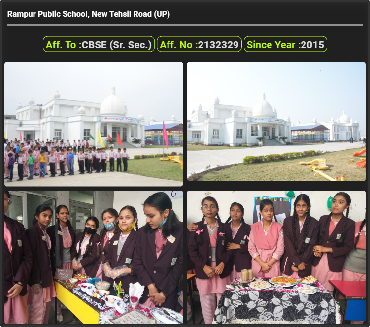 Rampur Public School, New Tehsil Road (UP), was established in 2015. Rampur Public School, New Tehsil Road (UP), is up to class Rampur Public School, New Tehsil Road (UP). Rampur Public School, New Tehsil Road (UP) is a CBSE (Sr. Sec.) Board school in New Tehsil Road, Rampur District. Affilication no of this school is 2132329. Currently, Mr. Sultan Mohammad Khan is the Head/Principal of Rampur Public School, New Tehsil Road (UP).This school has courses Nursery, Lower Kindergarten (LKG), Upper Kindergarten (UKG), Class 1st (I), Class 2nd(II), Class 3rd (III), Class 4th (IV), Class 5th (V), Class 6th (VI), Class 7th (VII), Class 8th (VIII), Class 9th (IX), Class 10th (X), Class 11th (XI), & Class 12th (XII). Check details of Rampur Public School, New Tehsil Road (UP) Admission Form 2020, Contact Number (E-Mail/Phone Number), Fee Structure, and Latest Official Notice.