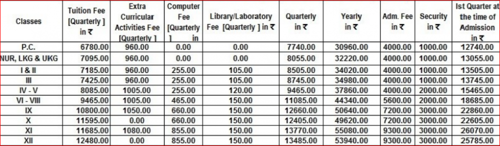 | Tuition Fee (Quarterly) | ₹ 12480/- |
