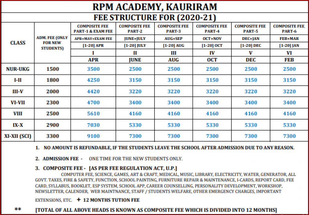{RPM Academy, Kauriram Gorakhpur Fee Structure -(Based on Previous Year)}