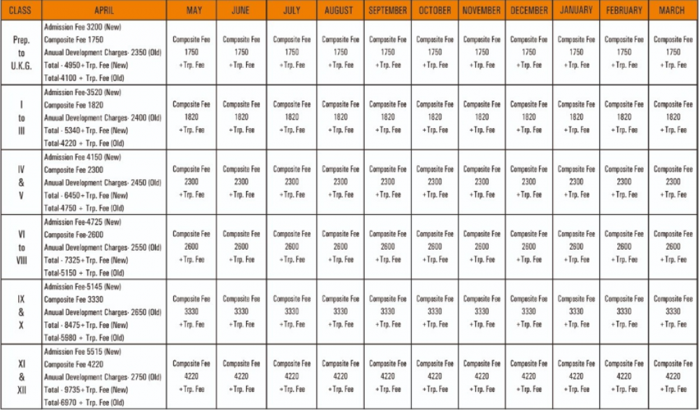 Note: Please contact school or visit official site for updated fee structure for year 2023- 2024.