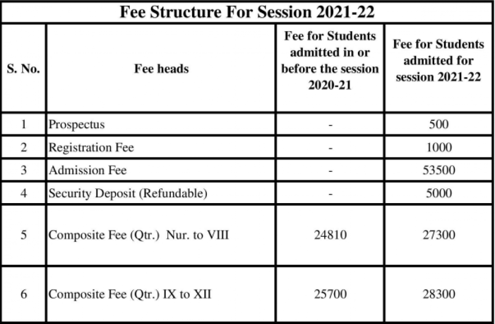 1. This fee is given according to the session 2021 to 2022.