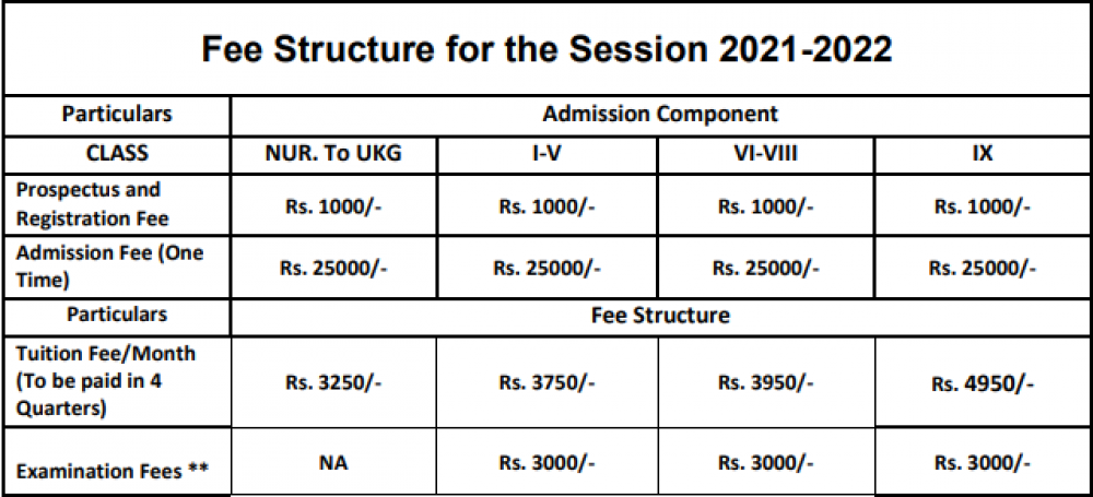 Get fee details about admission, Tuition fee and transort fee and other fee details.