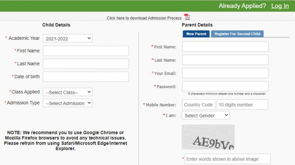 Note:- The registration form does not guarantee admission Admission is given on the basis of the number of seats in each class.