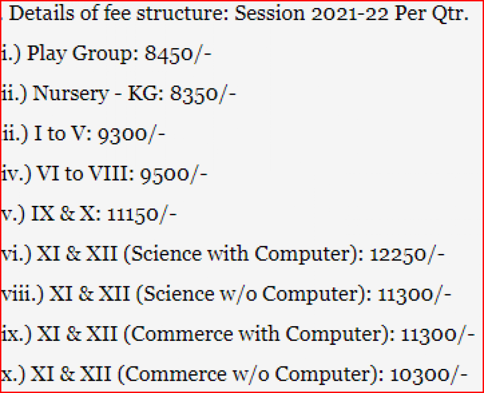 Note: Please contact school or visit official site for updated fee structure for year 2023- 2024.