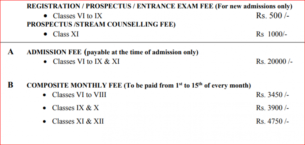 Note: Please contact school or visit official site for updated fee structure for year 2023- 2024.
