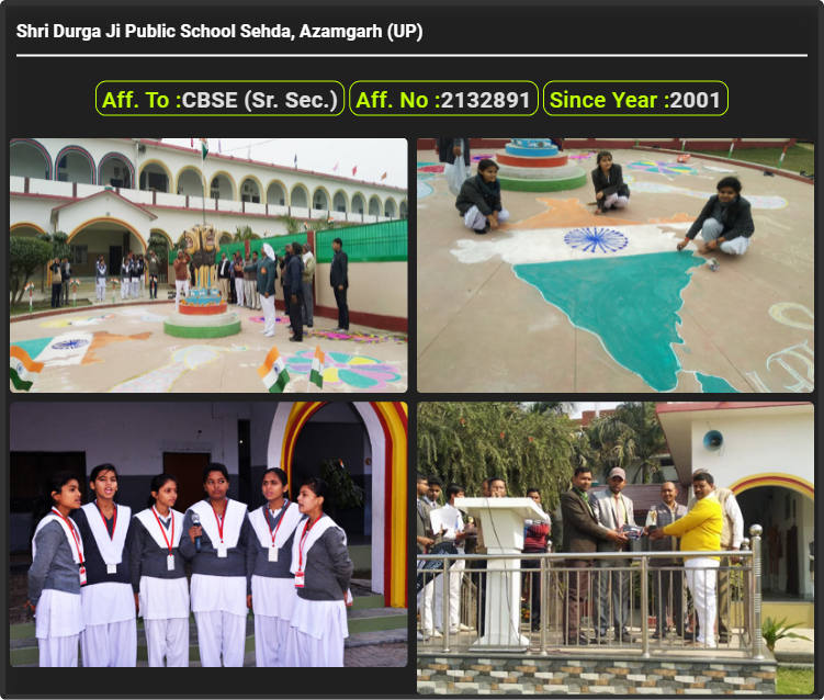 Shri Durga Ji Public School Sehda, Azamgarh (UP), was established in 2001. Shri Durga Ji Public School Sehda, Azamgarh (UP), is up to class Shri Durga Ji Public School Sehda, Azamgarh (UP). Shri Durga Ji Public School Sehda, Azamgarh (UP) is a CBSE (Sr. Sec.) Board school in Sehda, Azamgarh District. Affilication no of this school is 2132891. Currently, Mr. Yamuna Prasad Yadav is the Head/Principal of Shri Durga Ji Public School Sehda, Azamgarh (UP).This school has courses Class 1st (I), Class 2nd(II), Class 3rd (III), Class 4th (IV), Class 5th (V), Class 6th (VI), Class 7th (VII), Class 8th (VIII), Class 9th (IX), Class 10th (X), Class 11th (XI), & Class 12th (XII). Check details of Shri Durga Ji Public School Sehda, Azamgarh (UP) Admission Form 2020, Contact Number (E-Mail/Phone Number), Fee Structure, and Latest Official Notice.