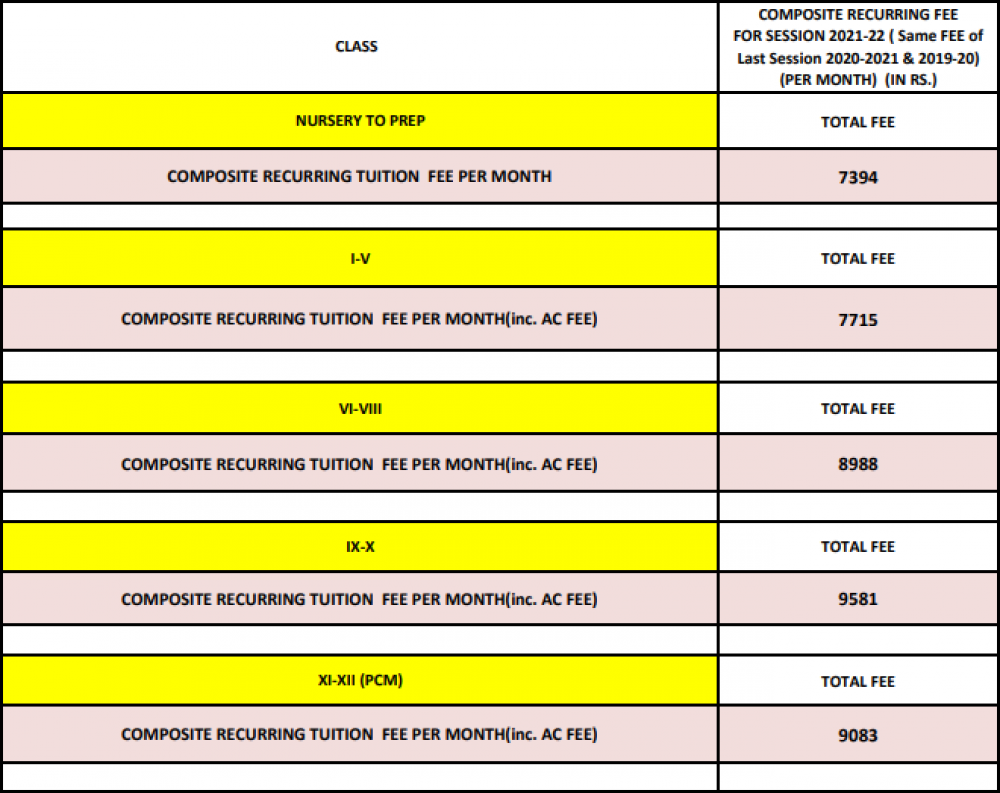 Note: Please contact school or visit official site for updated fee structure for year 2023- 2024.