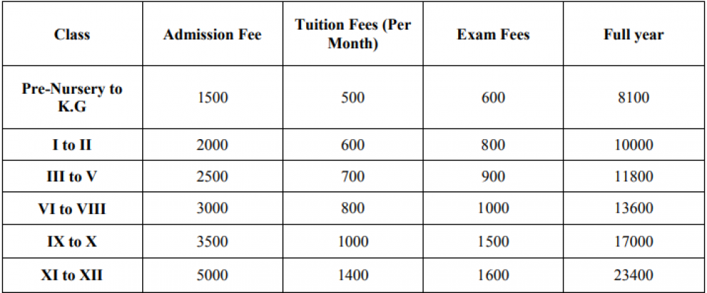 Note: Please contact school or visit official site for updated fee structure for year 2023- 2024.
