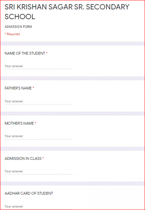 {Sri Krishan Sagar Public School, Noida, Admission form -(Based on Previous Year)}