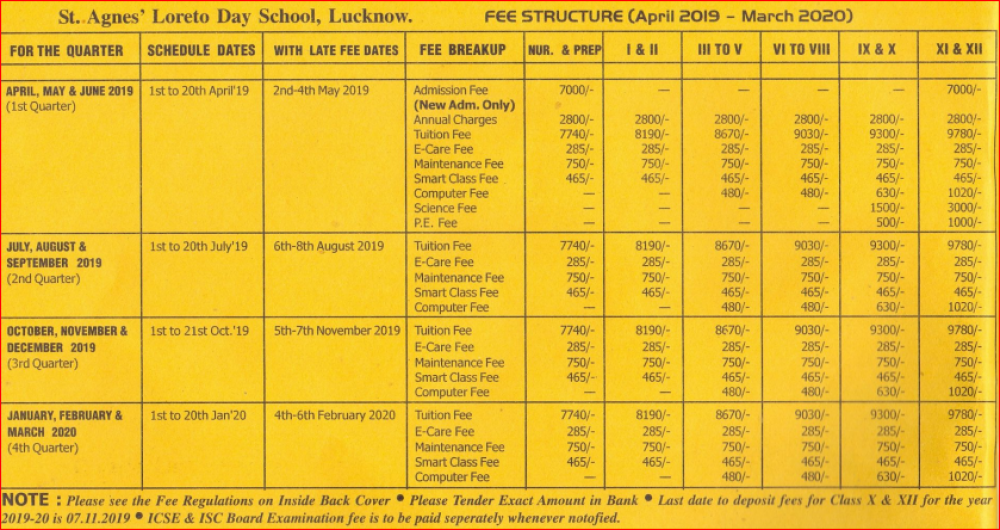 1. This fee is given according to the session 2019 to 2020.