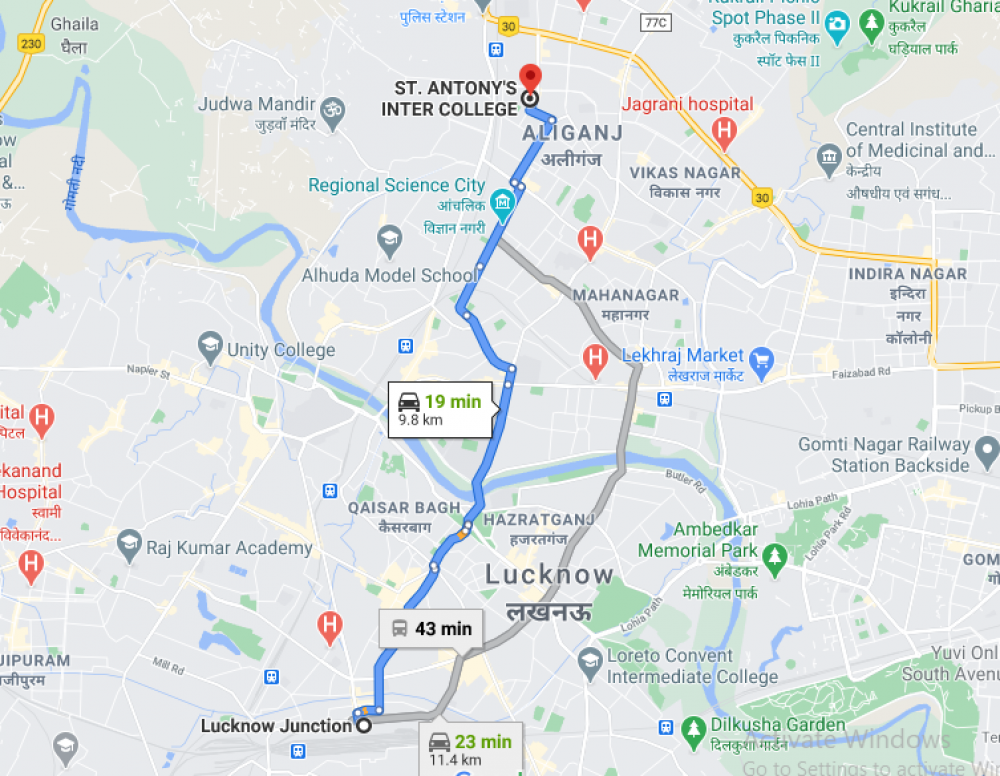 from Lucknow Junction, Preeti Nagar, Railway Colony, Charbagh, Lucknow, Uttar Pradesh 226004