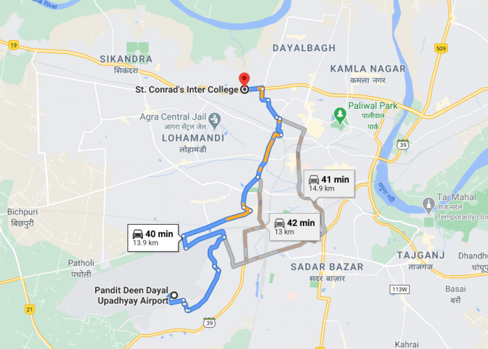 from Pandit Deen Dayal Upadhyay Airport, 59/10, VIP Road, Agra, Uttar Pradesh 282001