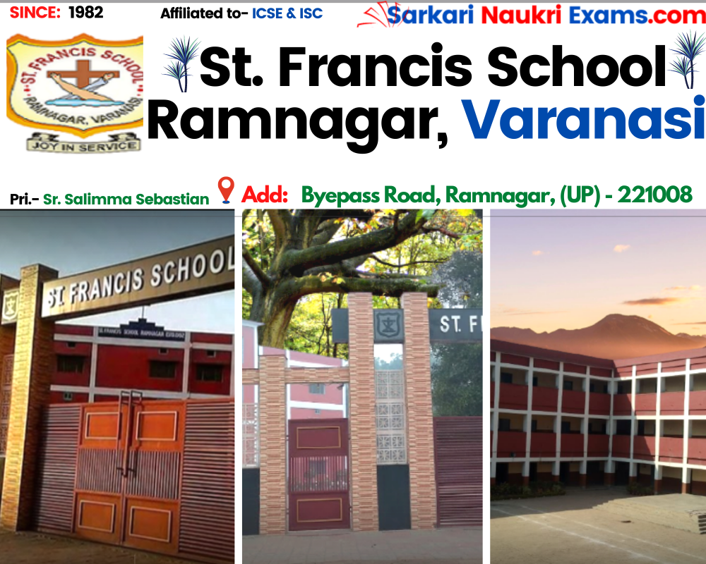 St. Francis School Ramnagar, Varanasi (सेंट फ्रांसिस स्कूल रामनगर, वाराणसी), was established in 1982 SFS, Ramnagar, Varanasi , is up to class SFS, Ramnagar, Varanasi. SFS, Ramnagar, Varanasi Course & Fee Structure is an ICSE & ISC Board school in Ramnagar, Varanasi District. Affiliation no of this school is UP093. Currently, Sr. Salima Sebastian is the Head/Principal of SFS, Ramnagar, Varanasi Course & Fee Structure . This school has courses in Class NUR. & UKG/LKG, Class I, Class II, Class III, Class IV, Class V, Class VI, Class VII, Class VIII, Class IX, Class X, Class XI, Class XII, Check details of St. Francis School Ramnagar, Varanasi (सेंट फ्रांसिस स्कूल रामनगर, वाराणसी) Admission Form -(Based on Previous Year), Contact Number (E-Mail/Phone Number), Fee Structure, and Latest Official Notice.
