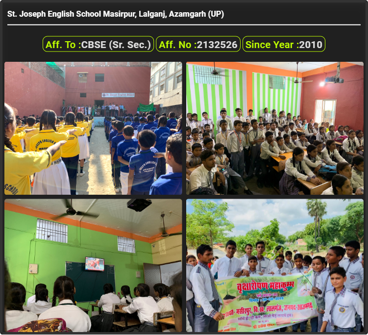 St. Joseph English School Masirpur, Lalganj, Azamgarh (UP), was established in 2010. St. Joseph English School Masirpur, Lalganj, Azamgarh (UP), is up to class St. Joseph English School Masirpur, Lalganj, Azamgarh (UP). St. Joseph English School Masirpur, Lalganj, Azamgarh (UP) is a CBSE (Sr. Sec.) Board school in Masirpur, Lalganj, Azamgarh District. Affilication no of this school is 2132526. Currently, Mrs. Reeta Singh is the Head/Principal of St. Joseph English School Masirpur, Lalganj, Azamgarh (UP).This school has courses Nursery, Lower Kindergarten (LKG), Upper Kindergarten (UKG), Class 1st (I), Class 2nd(II), Class 3rd (III), Class 4th (IV), Class 5th (V), Class 6th (VI), Class 7th (VII), Class 8th (VIII), Class 9th (IX), Class 10th (X), Class 11th (XI), & Class 12th (XII). Check details of St. Joseph English School Masirpur, Lalganj, Azamgarh (UP) Admission Form 2020, Contact Number (E-Mail/Phone Number), Fee Structure, and Latest Official Notice.