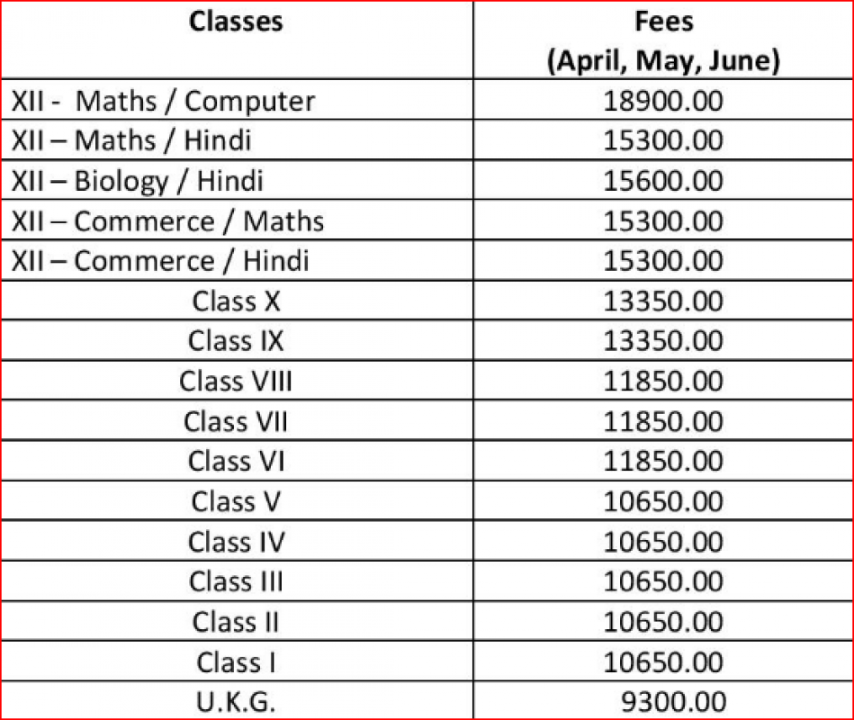Note: Please contact school or visit official site for updated fee structure for year 2023- 2024.