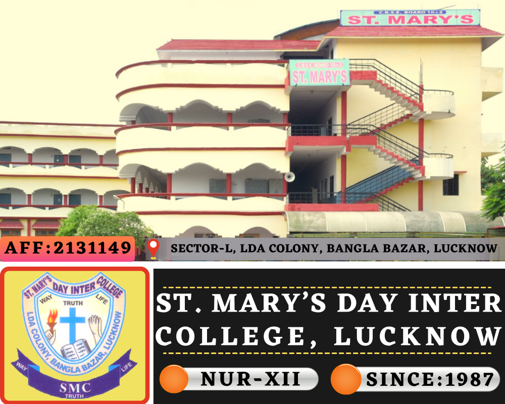 St. Mary’s Day Inter College Bangla Bazar, Lucknow (UP), सेंट मैरी डे इंटर कॉलेज बांग्ला बाजार, लखनऊ (यूपी), was established in 1987 SMIC, Lucknow, is up to class SMIC, Lucknow. St. Mary’s Day is an English Medium Co-ed Sr. Sec. Public School, in Lucknow, is a CBSE (Senior Secondary) Board school in LDA Colony, Bangla Bazar, Lucknow District. Affiliation no of this school is 2131149. Currently, Mrs. Sharmila Massey, [श्रीमती शर्मिला मैसी] is the Head/Principal of St. Mary’s Day is an English Medium Co-ed Sr. Sec. Public School, in Lucknow. This school has courses Class Nursery, Class KG, Class I to III, Class IV, Class V, Class VI to VIII, Class IX & X, Class XI, Class XII, Check details of St. Mary’s Day Inter College Bangla Bazar, Lucknow (UP), सेंट मैरी डे इंटर कॉलेज बांग्ला बाजार, लखनऊ (यूपी) Admission Form 2020, Contact Number (E-Mail/Phone Number), Fee Structure, and Latest Official Notice.