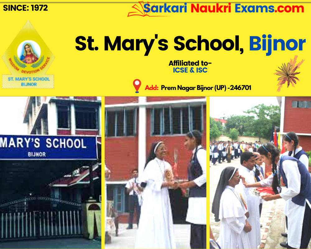 St. Mary's School, Bijnor (सेंट मैरी स्कूल, बिजनौर), was established in 1972. St. Mary's School, Bijnor admission -(Based on Previous Year), is up to class St. Mary's School, Bijnor admission -(Based on Previous Year). St. Mary's School, Bijnor course & fee structure is an ICSE & ISC Board school in Prem Nagar, Bijnor District. The affiliation no of this school is UP021. Currently, Sr. Rincy Maria is the Head/Principal of St. Mary's School, Bijnor course & fee structure. This school has courses Nursery, L.K.G. & U.K.G., Class I, Class II, Class III, Class IV, Class V, Class VI, Class VII, Class VIII, Class IX, Class X, Class XI, Class XII, . Check details of St. Mary's School, Bijnor (सेंट मैरी स्कूल, बिजनौर) Admission Form -(Based on Previous Year), Contact Number (E-Mail/Phone Number), Fee Structure, and Latest Official Notice.