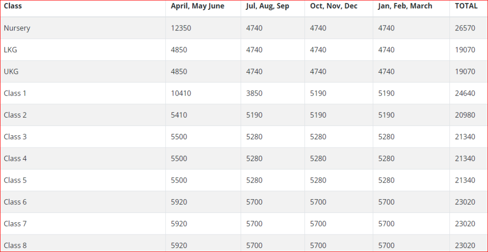 | Quarterly fee (April to June) | ₹ 11,180 |