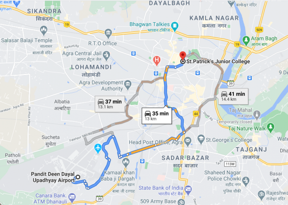 from Pandit Deen Dayal Upadhyay Airport, 59/10, VIP Road, Agra, Uttar Pradesh 282001