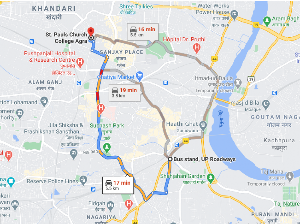 from Bus stand, UP Roadways, Bijali Ghar Crossing, Agra Fort, Rakabganj, Agra, Uttar Pradesh 282003