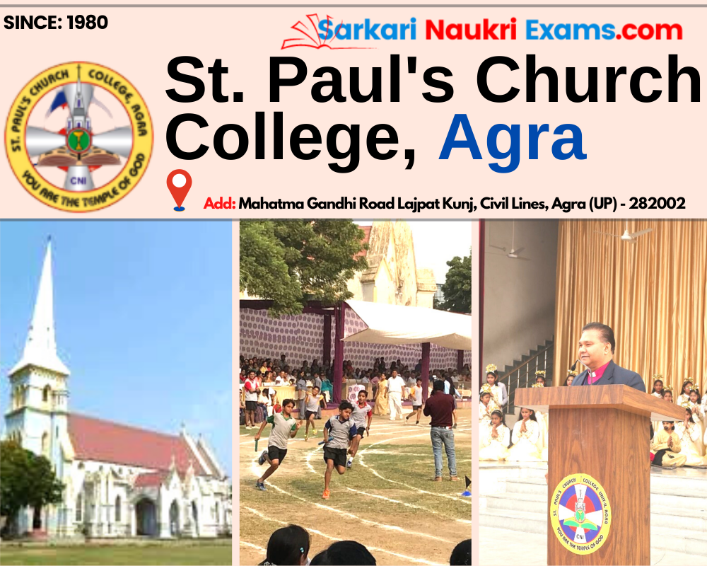 St. Paul's Church College, Agra (सेंट पॉल चर्च कॉलेज, आगरा), was established on 25 January 1980. St. Paul's Church College, Agra admission (Based on Previous Year), is up to class 12th. St. Paul's Church College, Agra admission (Based on Previous Year). St. Paul's Church College, Agra course & fee Details is an ICSE & ISC Board school in Mahatma Gandhi Road, Agra District. The affiliation no of this school is UP004. Currently, Mr. Vivek Daniels is the Head/Principal of St. Paul's Church College, Agra course & fee Details. This school has courses Class I, Class II, Class III, Class IV, Class V, Class VI, Class VII, Class VIII, Class IX, Class X, Classes XI & XII For Science Group, Classes XI & XII For Commerce Group, Check details of St. Paul's Church College, Agra (सेंट पॉल चर्च कॉलेज, आगरा) Admission Form , Contact Number (E-Mail/Phone Number), Fee Structure, and Latest Official Notice.