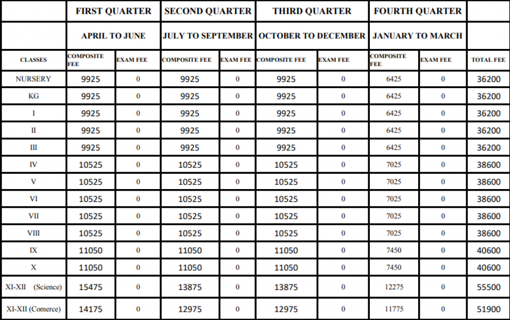Note: Please contact school or visit official site for updated fee structure for year 2023- 2024.