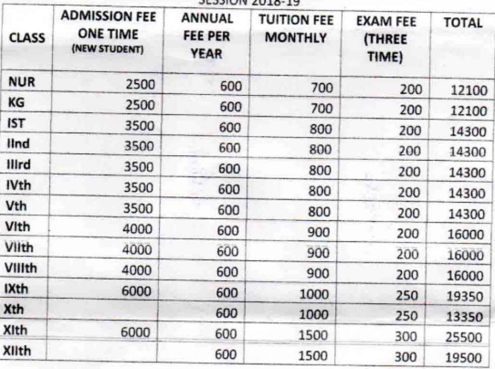 | Admission fee (For New Students) | ₹ 4,000 |