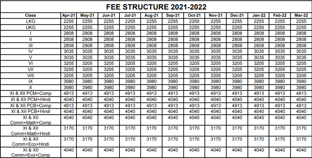 Note: Please contact school or visit official site for updated fee structure for year 2023- 2024.
