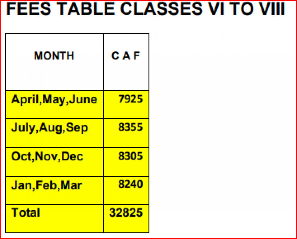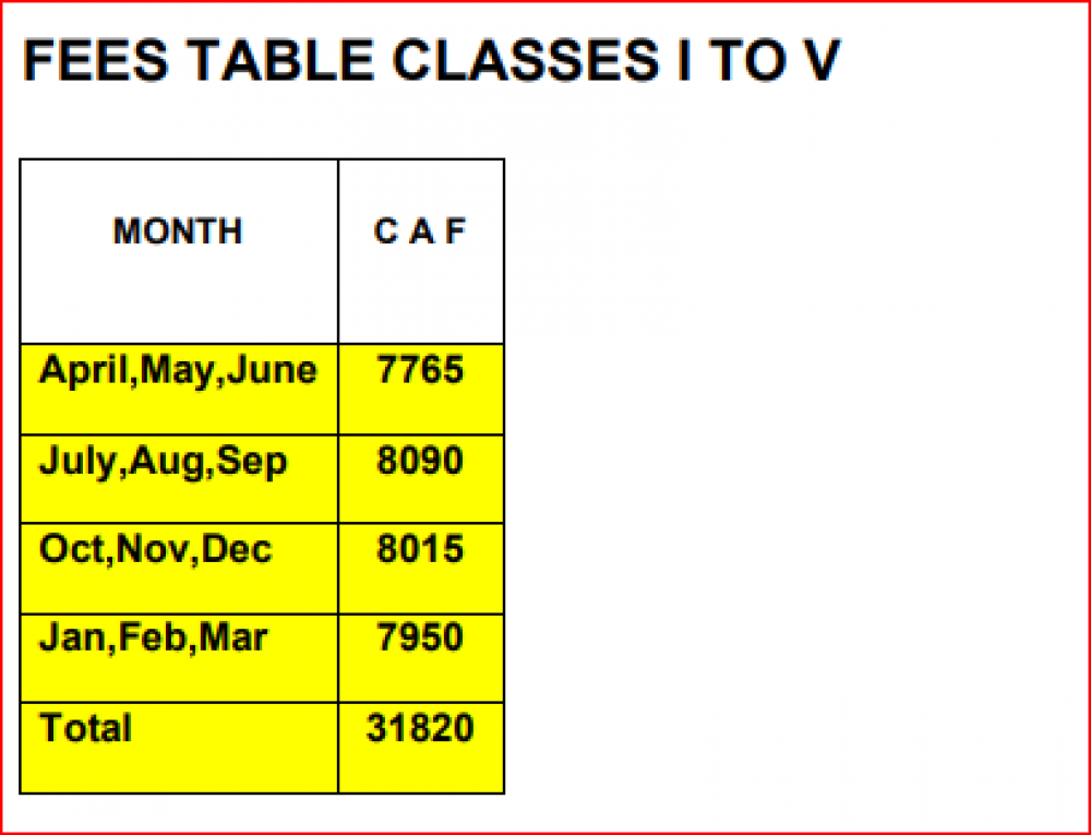 Get fee details about admission, Tuition fee and transort fee and other fee details.