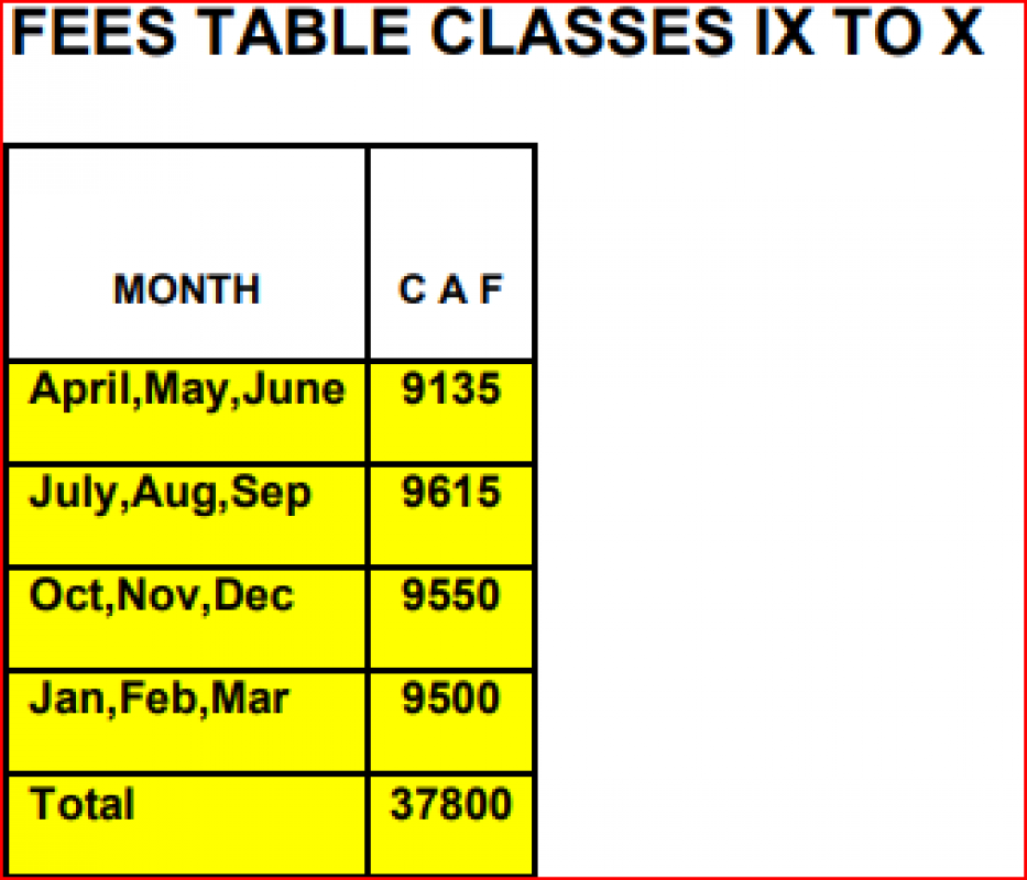 | 4th Quarterly fee (Jan, Feb, March) | ₹ 9,500 |