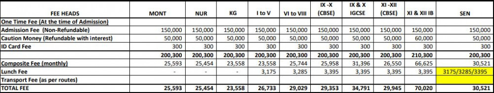 | Lunch fee | ₹ 0 |