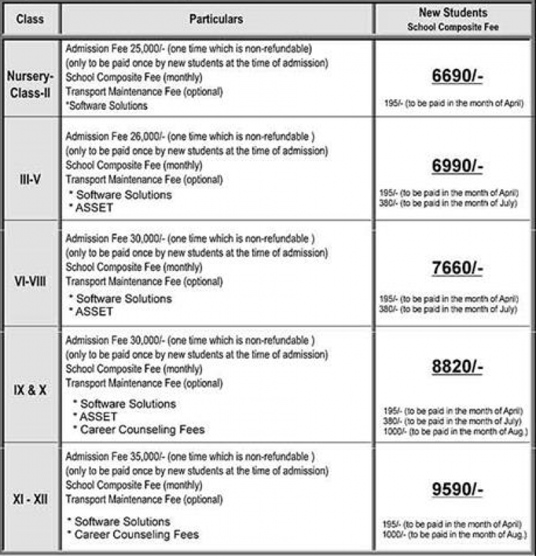 Note: Please contact school or visit official site for updated fee structure for year 2023- 2024.