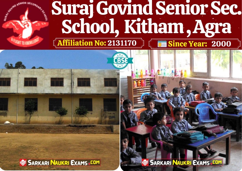 Suraj Govind Senior Secondary School, Agra {सूरज गोविंद सीनियर सेकेंडरी स्कूल, आगरा}, was established in 2000 SGSSS, Agra, is up to class SGSSS, Agra . Suraj Govind Sr. Sec. is an English Medium Co-ed School, Agra is a CBSE {Senior Secondary} Board school in Keetham NH- 2 Delhi Agra Road, Agra District. Affilication no of this school is 2131170. Currently, Sunita Garg {सुनीता गर्ग} is the Head/Principal of Suraj Govind Sr. Sec. is an English Medium Co-ed School, Agra .This school has courses Nur. & UKG, Class I, Class II, Class III, Class IV, Class V, Class VI, Class VII, Class VIII, Class IX, Class X, Class XI, Class XII. Check details of Suraj Govind Senior Secondary School, Agra {सूरज गोविंद सीनियर सेकेंडरी स्कूल, आगरा} Admission Form , Contact Number (E-Mail/Phone Number), Fee Structure, and Latest Official Notice.