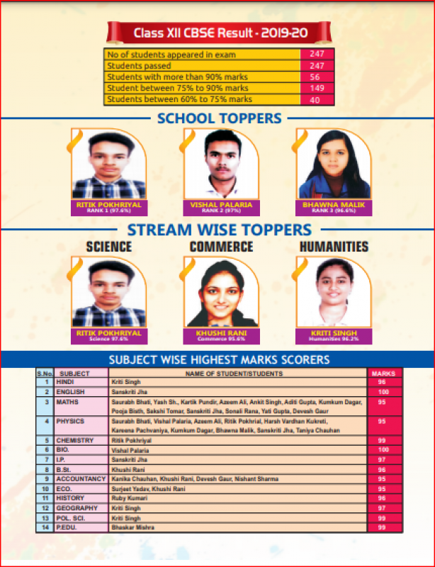 Admission to class XI of the CBSE course is not automatic for candidates who appeared/passes the CBSE examination from this institution. Students are selected to class XI on the basis of Their consistent and good academic performance in the previous class IX AND X. II. A minimum of 60% of marks in the board exam. III. Good conduct and behavior, and other social and personal qualities. IV. At least a 'B' grade awarded in the SUPW and community service. V. Having at least 80% attendance in classes IX and X. VI. At least 70% of marks in each subject opted for the CBSE course.