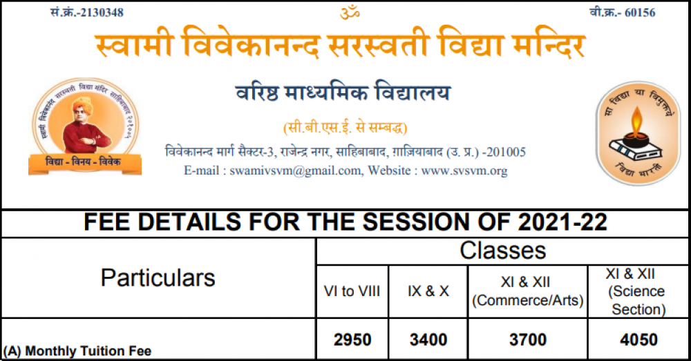 {Swami Vivekananda Saraswati Vidya, Ghaziabad Fee Structure -(Based on Previous Year)}