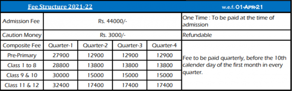 Admission fee (One Time):- Rs.- 44000/- | Caution fee (Refundable):- Rs.- 3000/-