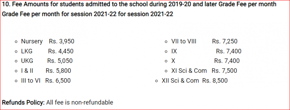 Note: Please contact school or visit official site for updated fee structure for year 2023- 2024.