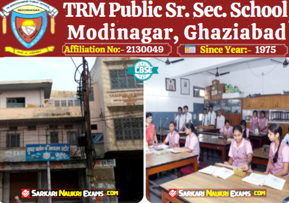 TRM Public School, Modinagar, Ghaziabad (UP), टीआरएम पब्लिक स्कूल, मोदीनगर, गाजियाबाद (उ.प्र।), was established in 1975 TRMPS, Ghaziabad, is up to class TRMPS, Ghaziabad. TRM Public School is an English Medium Co-ed Sr. Sec. Public School, in Ghaziabad, is a CBSE (Senior Secondary) Board school in Modinagar, Ghaziabad District. The affiliation no of this school is 2130049. Currently, Mrs. Rajni Ohri, [श्रीमती रजनी ओहरी] is the Head/Principal of TRM Public School is an English Medium Co-ed Sr. Sec. Public School, in Ghaziabad. This school has courses Class Nur, Class I, Class II, Class III, Class IV, Class V, Class VI, Class VII, Class VIII, Class IX, Class X, Class XI, Class XII, Check details of TRM Public School, Modinagar, Ghaziabad (UP), टीआरएम पब्लिक स्कूल, मोदीनगर, गाजियाबाद (उ.प्र।) Admission Form 2020, Contact Number (E-Mail/Phone Number), Fee Structure, and Latest Official Notice.
