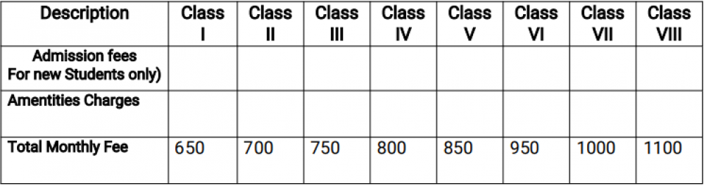 Get fee details about admission, Tuition fee and transort fee and other fee details.