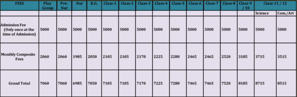 Note: Please contact school or visit official site for updated fee structure for year 2023- 2024.