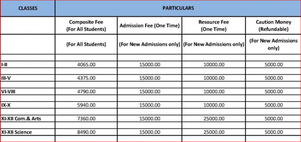 Note: Please contact school or visit official site for updated fee structure for year 2023- 2024.